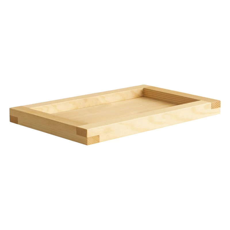 Das Holztablett von Vaarnii wird aus finnischem Kiefernholz gefertigt, dessen lebendige Maserung zusammen mit durchdachten Verbindungsdetails die Hauptrolle im schlichten, geometrischen Design des Tabletts spielt. Darüber hinaus hat die Designerin Livia Lauber die Benutzerfreundlichkeit der Tabletts berücksichtigt, indem sie einen kleinen Spalt an der Unterseite hinzugefügt hat, um das Anheben des Tabletts zu erleichtern. Sie hat auch die Kanten abgerundet, damit es problemlos zu halten ist. Ob als Serviertablett, als moderne Obstschale oder als Gefäß für Accessoires – das rechteckige Tablett verleiht jedem Raum eine wunderbar natürliche Note.