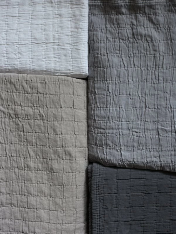 Der Aava-Bettüberwurf von Matri besteht aus geprägter, jacquardgewebter Baumwolle, die mit einem symmetrischen Quadratmuster verziert ist. Die Kombination ist raffiniert und entspannt zugleich. Die Aava-Kollektion umfasst Tagesdecken in ruhigen, raffinierten Farbtönen, die perfekt zum skandinavischen Einrichtungsstil passen und auch kräftigere Farben harmonisch ausgleichen.