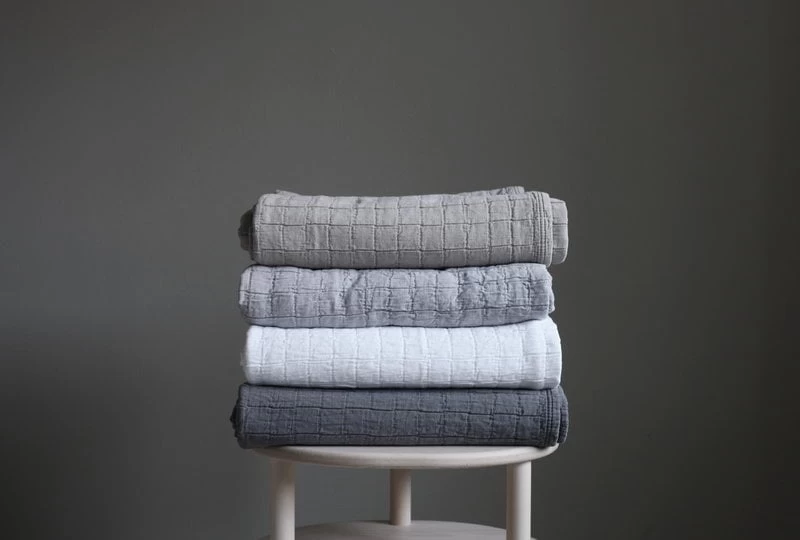 Der Aava-Bettüberwurf von Matri besteht aus geprägter, jacquardgewebter Baumwolle, die mit einem symmetrischen Quadratmuster verziert ist. Die Kombination ist raffiniert und entspannt zugleich. Die Aava-Kollektion umfasst Tagesdecken in ruhigen, raffinierten Farbtönen, die perfekt zum skandinavischen Einrichtungsstil passen und auch kräftigere Farben harmonisch ausgleichen.