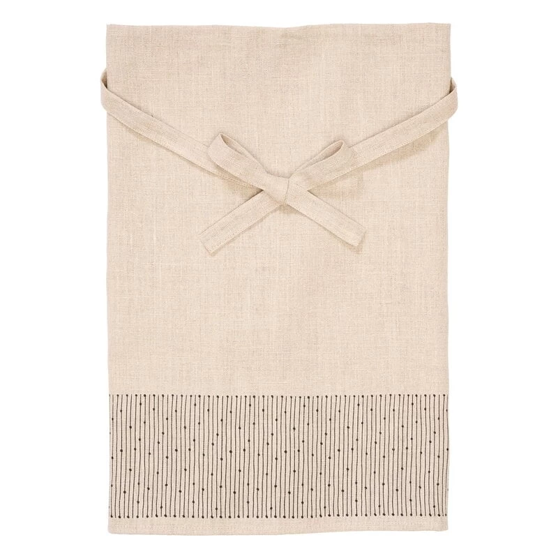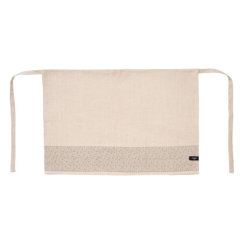 Die Halbschürze Mainio Sarastus von Arabia verleiht Küchen und Kochaktivitäten einen Hauch von zeitlosem finnischem Design mit modernem Geist. Das Sarastus-Muster auf der Schürze, das die Kraft des Lichts symbolisiert (Sarastus bedeutet „Dämmerung“), wurde von der Ivalo-Dekoration von Raija Uosikkinen aus dem Jahr 1965 inspiriert, deren rhythmische Linien sich für die „Mainio Sarastus“-Kollektion zu einer neuen, frischen Form arrangieren. Die Schürze ist zu 100 % aus Leinen gefertigt.