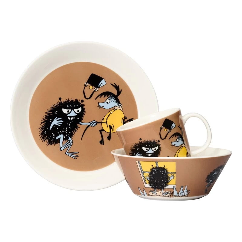 Die Tassen, Schalen und Teller der Mumin-Geschirrkollektion von Arabia zeigen die Figuren des Mumintals. Die ersten Stücke des Mumin-Geschirrs von Arabia kamen bereits in den 1950er-Jahren heraus, die groß angelegte Produktion begann 1990. Alle Illustrationen stammen von Tove Slotte, die sich von den Originalzeichnungen von Tove Jansson inspirieren lässt. Das Design der Kollektion stammt von Arabias zeitlosem Keramikgeschirr Teema, das von Kaj Franck entworfen wurde.