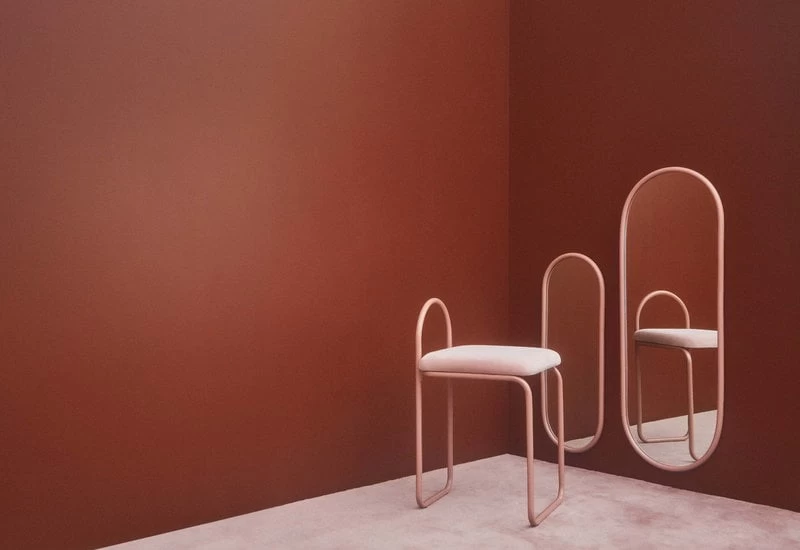 Der Spiegel Angui der dänischen Designmarke AYTM besticht durch den Kontrast von elliptischer Form und kräftigem, rohrförmigen Rahmen. Dank seines schmalen Designs passt Angui auch in kleine Flure und Ankleidebereiche; die markanten Farben verleihen jedem Raum eine lebendige Note.