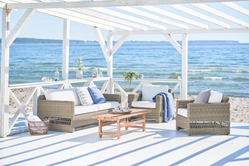 Der Carrie-Loungesessel ist Teil der „Georgia Garden“-Kollektion von Sika-Design, die von der Ästhetik des britischen Kolonialstils und klassischen dänischen Korbmöbeln inspiriert wurde. Das Alu-Rattan-Aluminium und das synthetische ArtFibre-Geflecht verleihen den Möbeln ein rattanähnliches Aussehen. Zudem sind die Möbel pflegeleicht und für alle Wetterbedingungen geeignet. Dank der langlebigen Materialien und des zeitlosen Designs eignet sich die „Georgia Garden“-Kollektion sowohl für private Gärten als auch für öffentliche Außenbereiche.