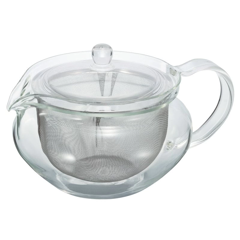 Die ChaCha-Kyusu-Maru-Teekanne von Hario ist aus hochwertigem hitzebeständigem Glas gefertigt, durch das Sie das Aufbrühen des Tees beobachten können. Die elegante Teekanne ist mit einem großen Teesieb ausgestattet, welches das Ein- und Ausgießen des Wassers erleichtert, ohne dass Blätter in den Tee gelangen. Die Teekanne hat ein Fassungsvermögen von 700 ml, sodass Sie je nach Größe Ihrer Tassen 3–4 Tassen Tee aufbrühen können.