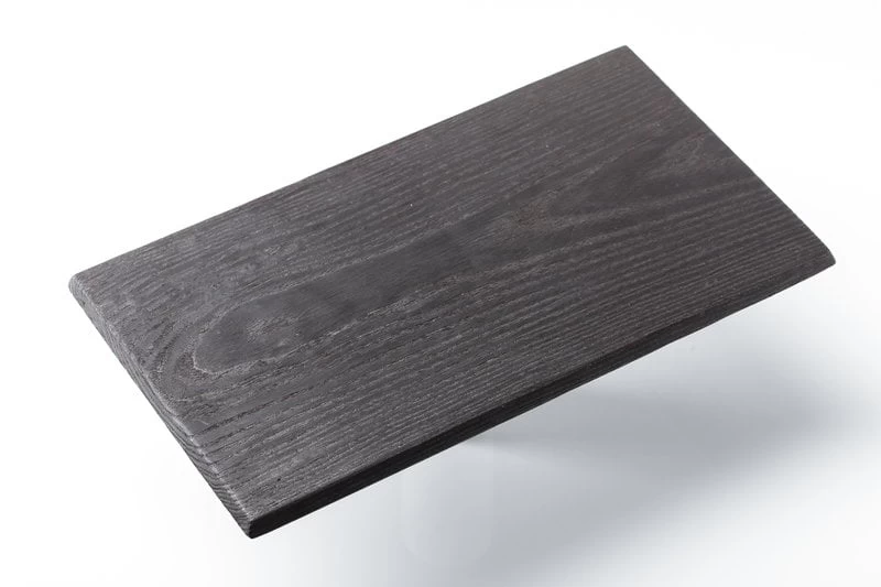 Das Tablett Eclipse ist Teil einer Geschirrkollektion, die von Laima Grigone für das lettische Unternehmen Vaidava entworfen wurde. Das handgefertigte Tablett aus Eschenholz wird mit der japanischen Holzverkohlungstechnik Shou Sugi Ban hergestellt und mit einer Mischung aus Leinöl und Bienenwachs veredelt. Die Serie Eclipse zeichnet sich durch klare, glatte Linien und eine tiefschwarze Farbe aus. Sie schafft ein beeindruckendes Tischbild, entweder allein oder in Kombination mit Geschirr in anderen Farben und Formen.