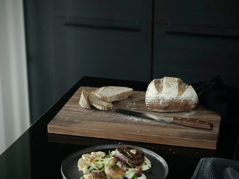 Das von Jacob Leth-Espensen für Fiskars entworfene Brotmesser Norr kombiniert hochwertige Materialien mit einem angenehmen, ergonomischen Design und wurde von der traditionellen nordischen Küche und Kultur inspiriert. Die Holzgriffe sind aus umweltfreundlichem FSC-zertifiziertem Ahornholz gefertigt: Die innovative Kebony-Technologie verleiht ihm eine satte braune Farbe und macht es widerstandsfähiger als Teakholz. Die Norr-Klingen sind aus deutschem Stahl mit einer Härte von HRC 54 gefertigt.