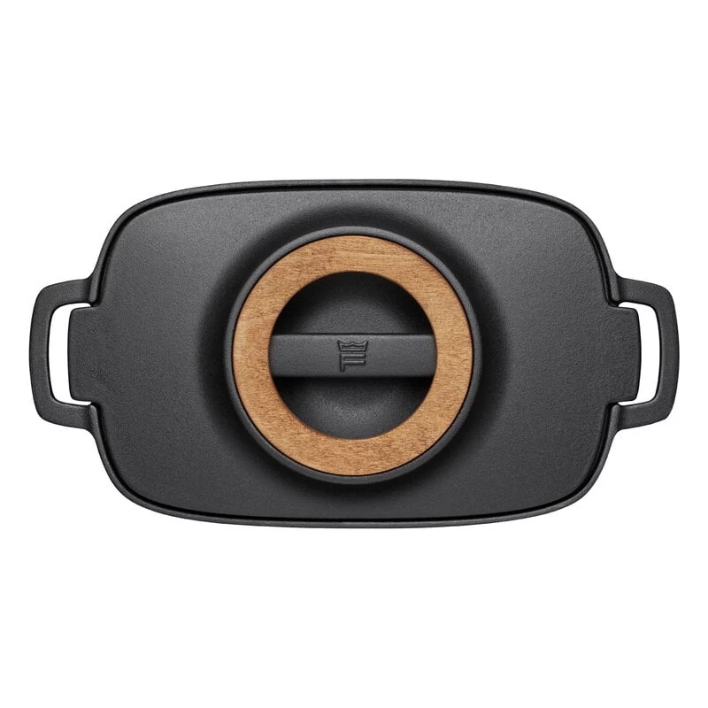 Die gusseiserne Schmorpfanne von Fiskars mit abnehmbarem Holzuntersatz ist Teil der hochwertigen Kochgeschirrserie von Fiskars, die von nordischen Kochtraditionen und dem finnischen Erbe der Messerherstellung inspiriert ist. Dank der einzigartigen Thermium-Mineralbeschichtung haben alle Töpfe und Pfannen der Kollektion eine für hohe Temperaturen geeignete Antihaft-Oberfläche. Die Thermium-Beschichtung ermöglicht das Anbraten der Zutaten vor dem Garen im Ofen. Die Töpfe und Messer der Kollektion werden in Finnland aus starken, langlebigen und pflegeleichten Materialien wie Stahl, Gusseisen und Holz hergestellt. Fiskars Norden gewann 2018 den australischen Good Design Award und den Red Dot Design Award.