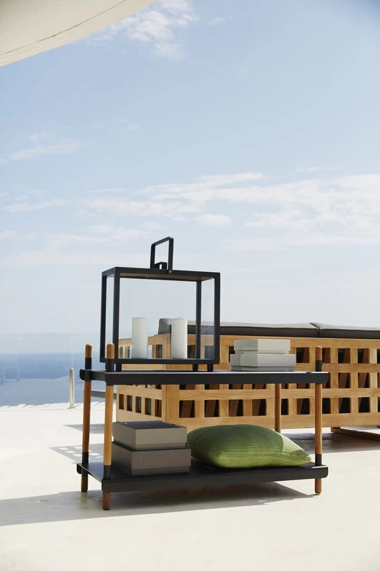 Das Frame-Regal von Cane-line kombiniert die Haltbarkeit von Aluminium mit der natürlichen Wärme von Teakholz, das sich unbehandelt mit der Zeit in ein wunderschönes Silbergrau verwandelt. Das freistehende Regal mit zwei Ebenen ist eine praktische Ergänzung für Terrasse oder Balkon und ein echtes Must-have für jede Außenküche. Das geradlinige Frame-Regal findet ebenso Platz im Innenbereich, wo Sie aus mehreren Modellen ein ganzes Regalsystem kreieren können.