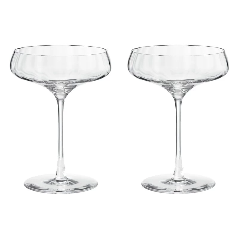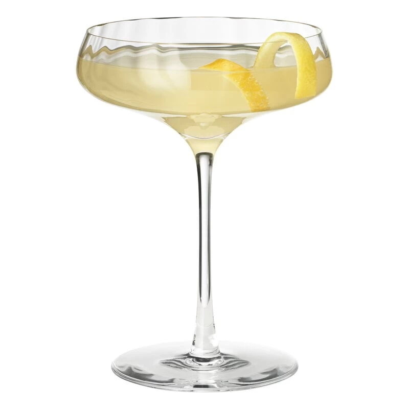Die Bernadotte-Cocktailgläser von Georg Jensen sind aus bleifreiem Kristallglas gefertigt und mit den zarten Rillen verziert, die für die gesamte Bernadotte-Serie charakteristisch sind. In diesen flachen Gläsern können Sie Champagner, Ihre Lieblingscocktails und -mocktails sowie köstliche Desserts stilvoll servieren. Zum Set gehören zwei elegante Trinkgläser.