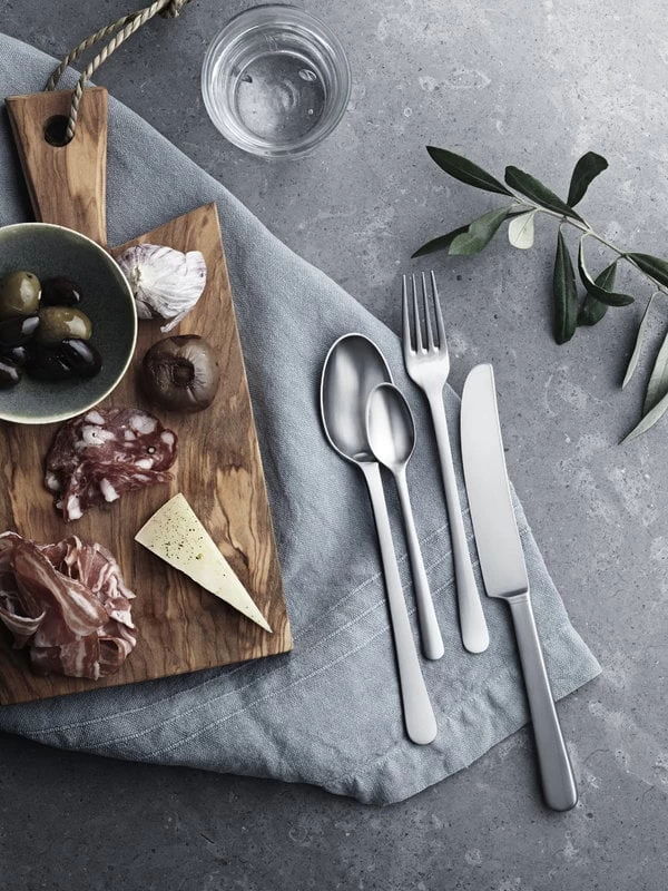 Das Besteckset von Georg Jensen Copenhagen deckt den Tisch mit weichen Kurven und dem schönen matten Glanz des Edelstahls. Das 1991 von Grethe Meyer entworfene Besteck Copenhagen bringt einen eleganten Hauch von skandinavischem Design in den Alltag und zu Feierlichkeiten.