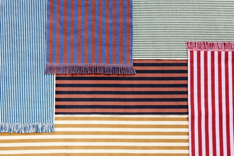 Der Stripes and Stripes-Teppich von HAY begeistert mit seinen vertikalen Streifen, auf die der Name schon hinweist. Die kontrastierenden Farben, das grafische Design und die verspielten Fransen bringen eine fröhliche Atmosphäre in den Raum und schaffen die Illusion einer zusätzlichen Länge. Der aus strapazierfähiger und dennoch weicher Baumwolle gefertigte Stripes and Stripes-Teppich ist eine einzigartige Ergänzung für den Flur, die Küche oder das Wohnzimmer.