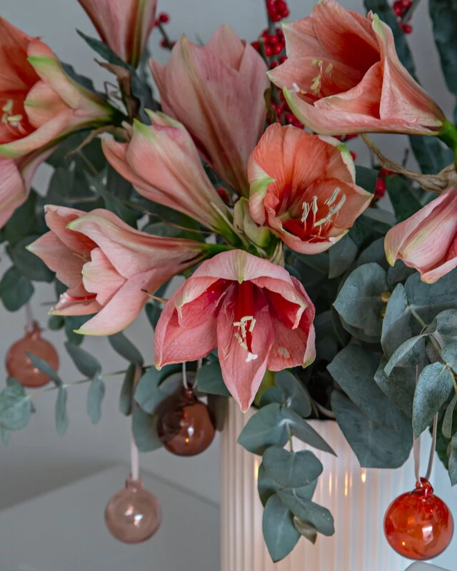 Das Glaskugel-Set von Iittala enthält fünf ornamentale Glaskugeln in verschiedenen Rottönen. Die transparenten Glaskugeln verbreiten Weihnachtsstimmung am Fenster, an den Zweigen des Weihnachtsbaums oder als Geschenk. Die kleinen Glaskugeln haben einen Durchmesser von 40 mm und werden mit hellgrauen Bändern zum Aufhängen in einer runden Geschenkverpackung geliefert.