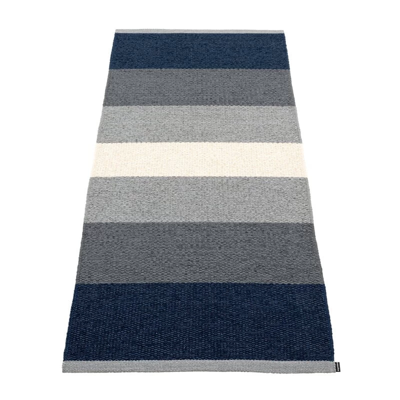 Der aus phthalatfreiem PVC-Band gefertigte Teppich ist sehr pflegeleicht und damit eine praktische Wahl für alle Räume, vom Kinderzimmer bis zur Küche. Dank seiner schmalen Form ist der Teppich auch ein idealer Flurläufer, und er kann sogar im Freien auf dem Balkon, der Veranda oder der Terrasse eingesetzt werden. Der im schwedischen Dalarna hergestellte Teppich wurde mit traditionellen Techniken gewebt und ist in mehreren Farbvarianten erhältlich.