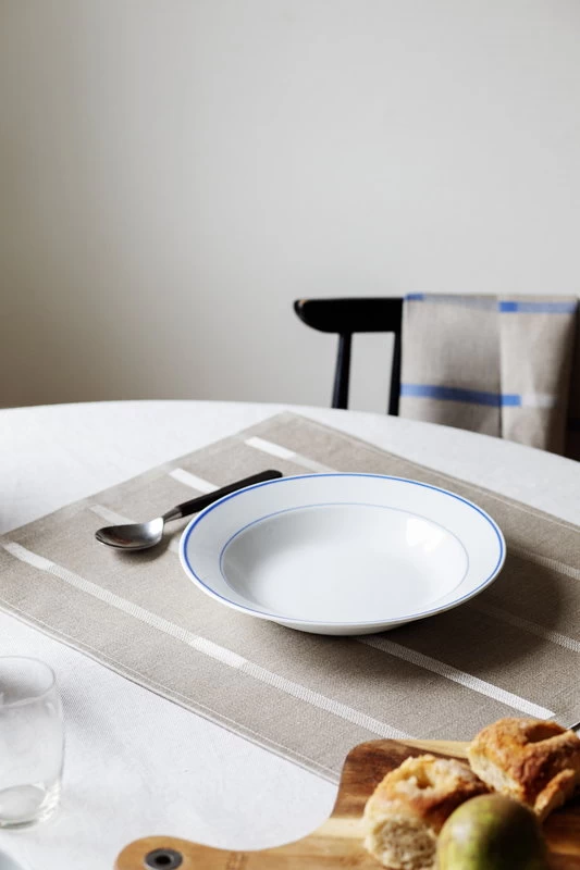 Das von Wesley Walters und Salla Luhtasela, auch bekannt als Kaksikko, für Lapuan Kankurit entworfene Linnea-Tischset zeichnet sich durch ein grafisches Muster aus, das aus Streifen besteht, die abwechselnd in dunkleren und helleren Tönen gehalten sind. Die Grundfarbe ist rustikales, natürliches Leinenbeige. Das Tischset aus 100 % Leinen wurde in Finnland in der hauseigenen Weberei von Lapuan Kankurit gewebt.