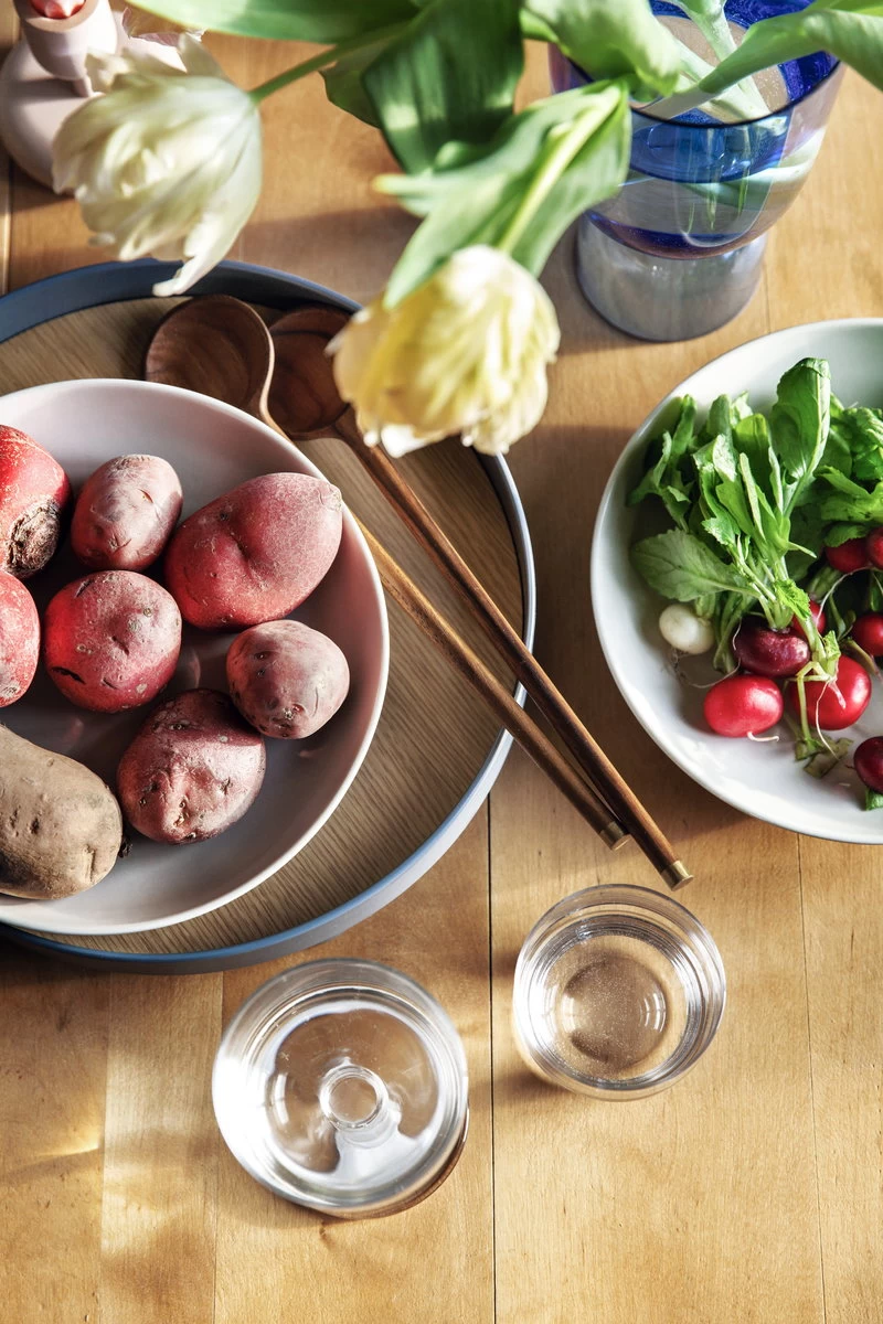 Die Stielgläser Sukat Makkaralla von Marimekko bringen Freude und Charakter auf jeden gedeckten Tisch. Das wellenförmige Dekor der Gläser verleiht der Kollektion ihren reizvollen Namen und ihr Aussehen.