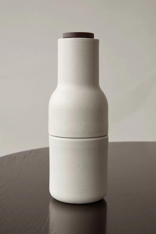 Die Gewürzmühlen, die von Norm Architects für Menu entworfen wurden, sind eine innovative Interpretation der traditionellen Gewürzmühlen. Sie verfügen über ein leistungsstarkes Keramikmahlwerk, das sich bequem am oberen Ende der Mühle befindet, so dass Sie sich keine Sorgen machen müssen, dass sich das Mahlgut auf dem Tisch verteilt. Das schlichte, flaschenförmige Design ist heiter, einzigartig und sieht in jeder Küche gut aus.