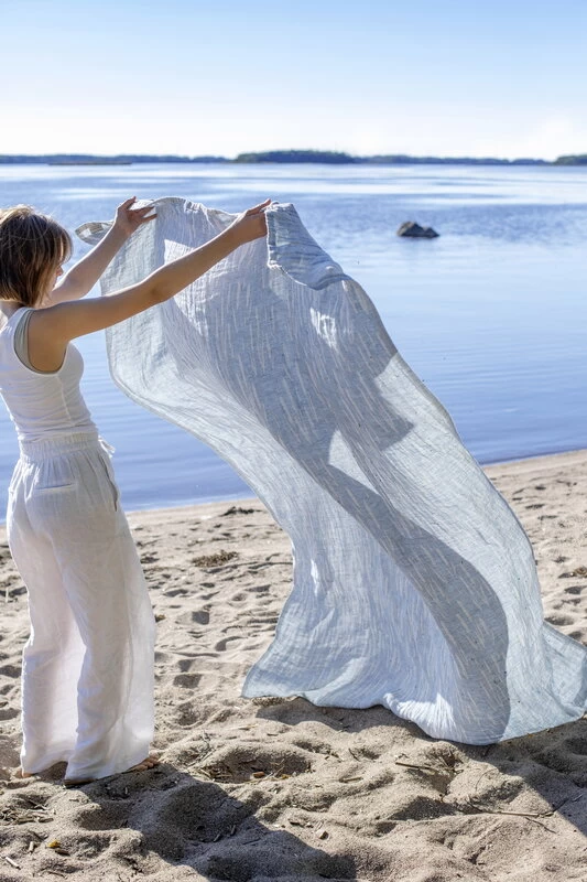 Die Osmankäämi-Tischdecke von Lapuan Kankurit ist mit einem ansprechenden Design von Elina Helenius verziert, das eine Hommage an die Gründerin und erste Designerin von Lapuan Kankurit, Liisa Hjelt, darstellt. Die ursprünglichen Osmankäämi-Textilien wurden in den 1970er-Jahren entworfen und aus Jacquard gewebt, aber heute besteht das Material zu 100 % aus Leinen. Das multifunktionale Leinentuch rundet als Tischdecke jedes Tischgedeck ab, eignet sich aber auch als dünne Decke im Sommer, als Fenstergardine oder als Picknickdecke im Park. Die Tischdecke wird in Lapuan Kankurits eigener Weberei in Finnland hergestellt.
