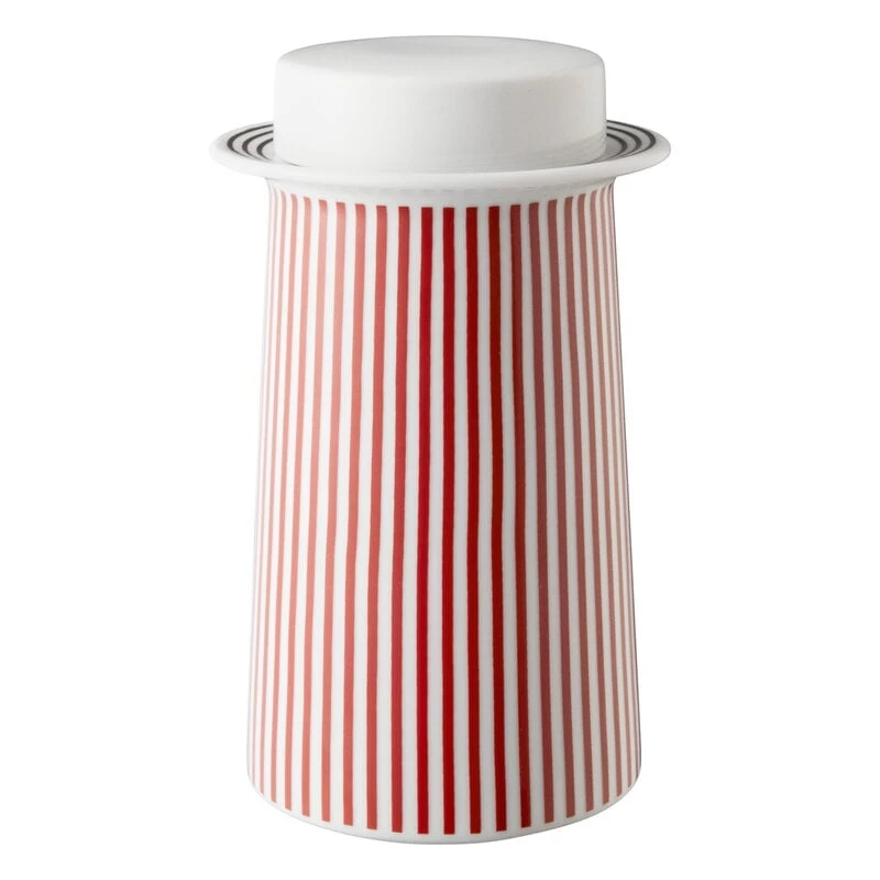Die PC-Teebox von 1616 / arita japan ist mit einem reizvollen roten Streifenmotiv sowie zwei schwarzen Ringen an der Öffnung versehen. Das Keramikgefäß eignet sich hervorragend zum Aufbewahren von Teeblättern, kann aber auch für Zucker, Süßigkeiten oder andere Dinge verwendet werden.