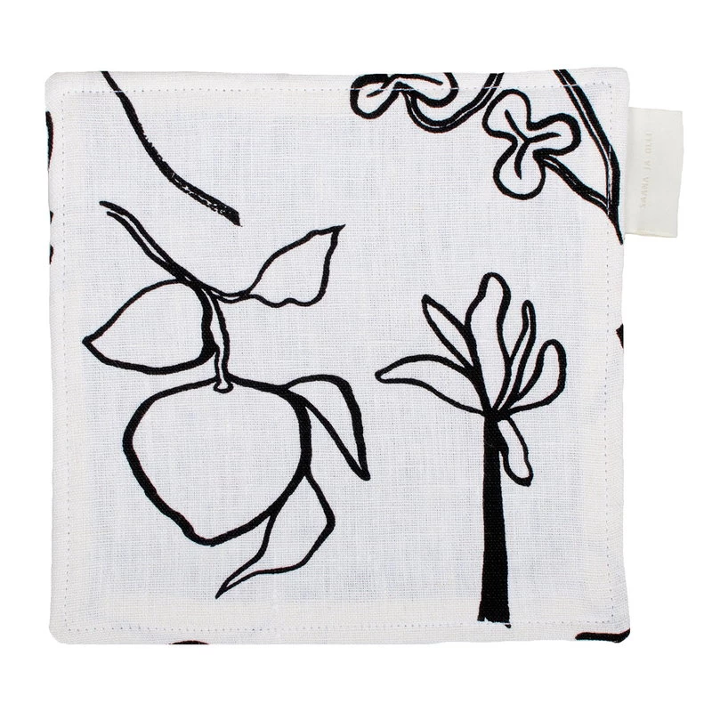 Der Topflappen/Untersetzer Onnenmaa von Saana ja Olli zeigt ein organisches Muster, das aus menschlichen Figuren, Pflanzen und anderen Elementen der Natur besteht. Mit lockeren Pinselstrichen gemalt zeigt Onnenmaa (Arkadien) einen traumartigen Zufluchtsort in einer unbeständigen Welt. Alle Produkte von Saana ja Olli sind aus strapazierfähigem 100%igen Hanfgewebe gefertigt und alltagstauglich. Die Produkte werden in Finnland transparent hergestellt.