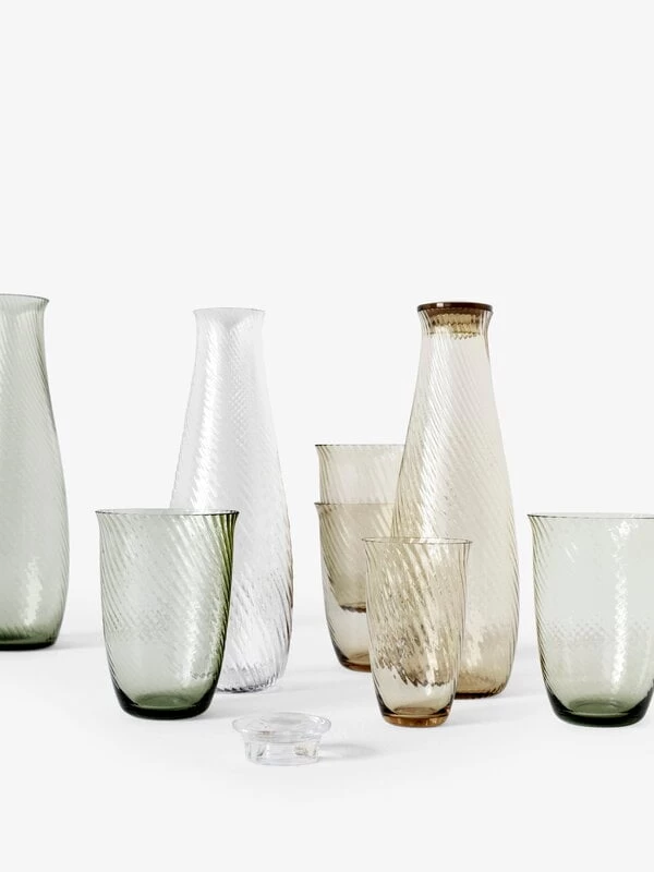 Die Collect-Glaskaraffe von &Tradition bezaubert mit ihren weichen Linien und ihrer faszinierenden Textur. Der Rand der Karaffe ist, von asiatischem Stil inspiriert, leicht geschwungen und verleiht dem Design eine zarte Note. Die Karaffe ist aus mundgeblasenem Glas gefertigt, was sie zu einem schönen Unikat macht.