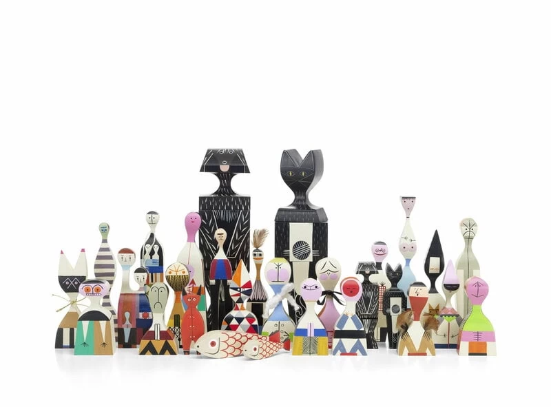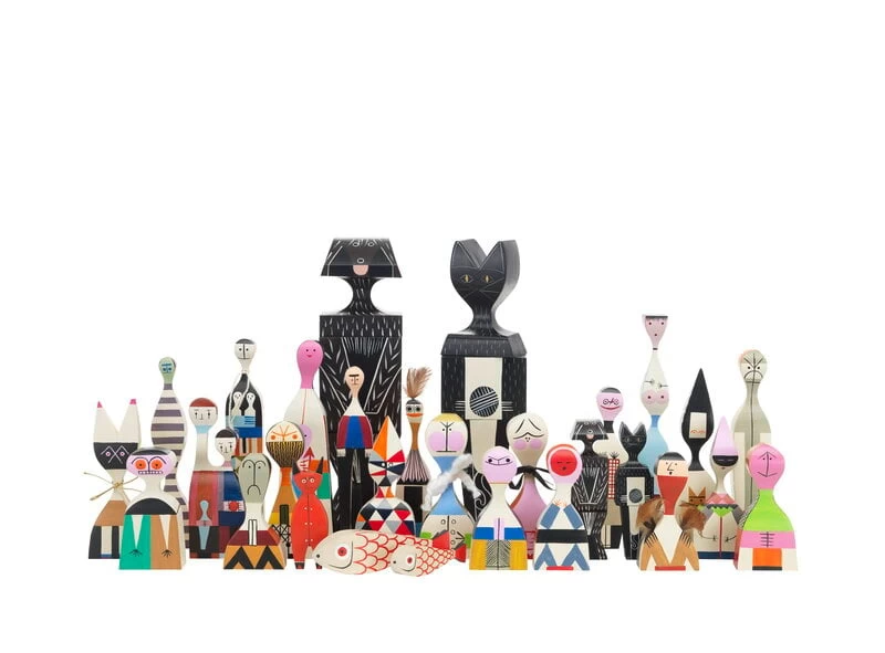 Im Jahr 1953 entwarf der amerikanische Designer Alexander Girard eine Holzpuppen-Kollektion für sein Haus in Santa Fe. Heute wird Girards farbenfrohe Kollektion der Holzpuppen von Vitra produziert. Die liebenswerten Holzpuppen wurden von Girards Leidenschaft für südamerikanische, asiatische und europäische Volkskunst inspiriert und können sowohl als Dekorationsartikel als auch als Spielzeug verwendet werden.