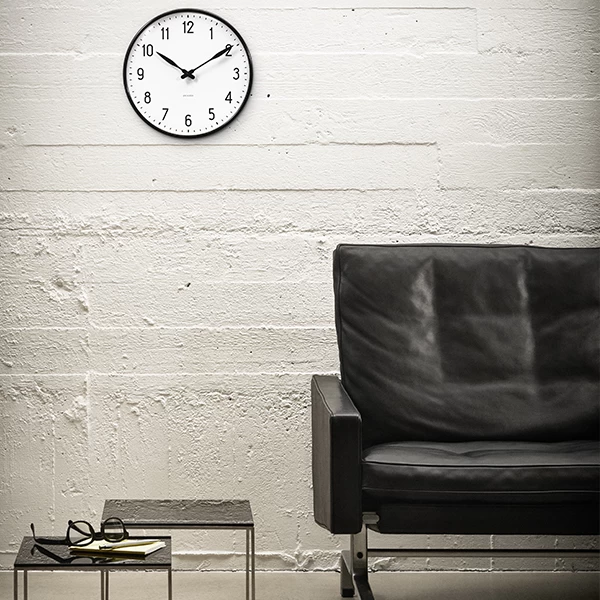 Die Wanduhr AJ Station wurde 1941 vom Architekten Arne Jacobsen für den dänischen Elektrohersteller Lauritz Knudsen entworfen. Die schlichte Nummerierung, die schönen Zeiger und das schwarze Aluminiumgehäuse kreieren einen attraktiven Zeitmesser, der auch für moderne Innenräume gut geeignet ist. Die Wanduhr AJ Station ist in drei Größen erhältlich.